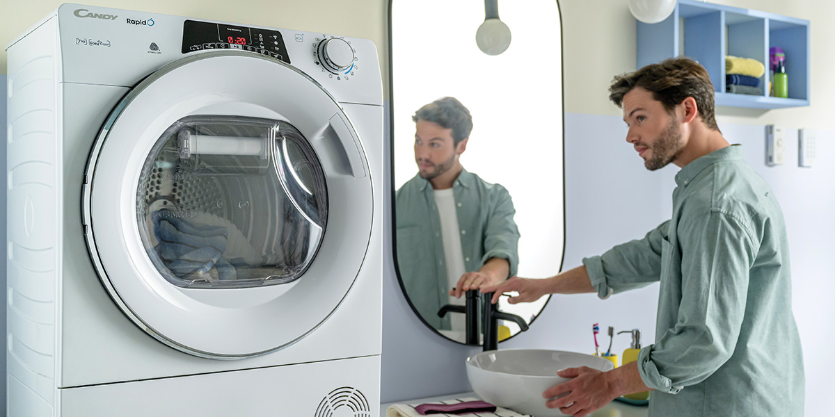 Wollten Sie schon öfter zwei Geräte gleichzeitig betreiben, hatten aber Angst, dass dabei die Sicherungen durchbrennen? Candy hat auch für dieses Problem eine Lösung: Das Wärmepumpensystem sorgt für einen wirklich niedrigen Energieverbrauch von 0,7 kW/h. Dies ist ungefähr ein Drittel des Verbrauchs eines herkömmlichen Kondenstrockners. Dies wird durch ein geschlossenes Kreislaufsystem ermöglicht, das eine Wärmezerstreuung verhindert und wobei das Gerät bei niedrigeren Temperaturen läuft. Das erlaubt den gleichzeitigen Betrieb der Waschmaschine und des Trockners oder anderer Geräte, was Zeit und Geld zugleich spart.