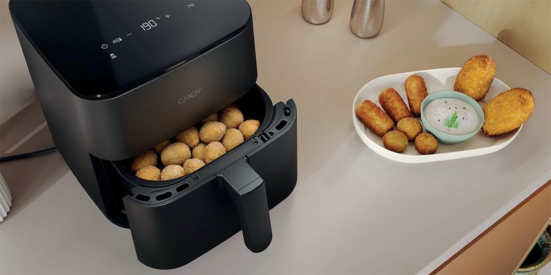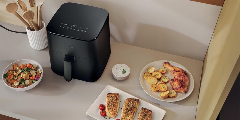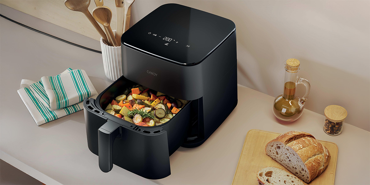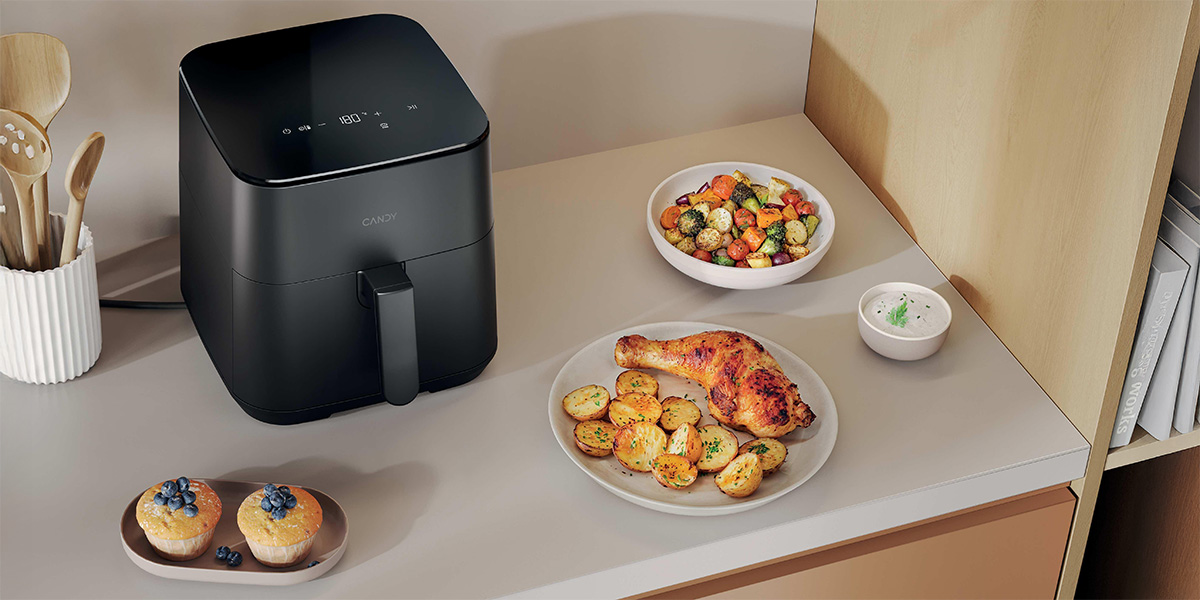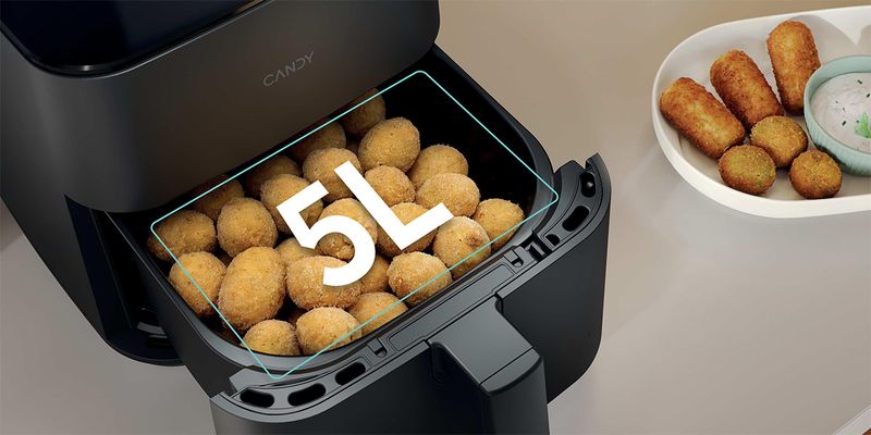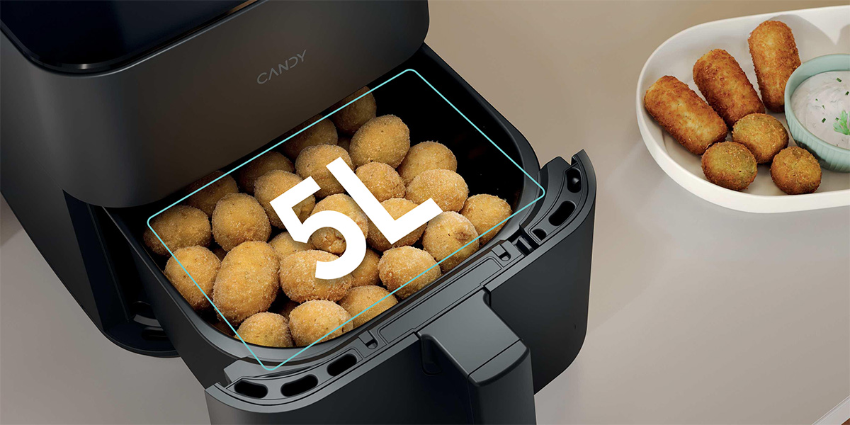 Η Φριτέζα Αέρος Candy σας επιτρέπει να ετοιμάζετε υγιεινά, νόστιμα γεύματα με λιγότερο λάδι, προσφέροντας τραγανά και γευστικά αποτελέσματα. Με 8 επιλογές μαγειρέματος, Πατάτες, Κοτόπουλο, Κρέας, Γαρίδες, Ψήσιμο, Λαχανικά, Ζέσταμα, και Απόψυξη, προσφέρει ευελιξία για διάφορα πιάτα. Η χωρητικότητα των 5 λίτρων μπορεί να εξυπηρετήσει έως και 4 άτομα, όλα σε έναν συμπαγή σχεδιασμό. Ιδανική για πιο υγιεινό μαγείρεμα χωρίς να θυσιάζετε τη γεύση!