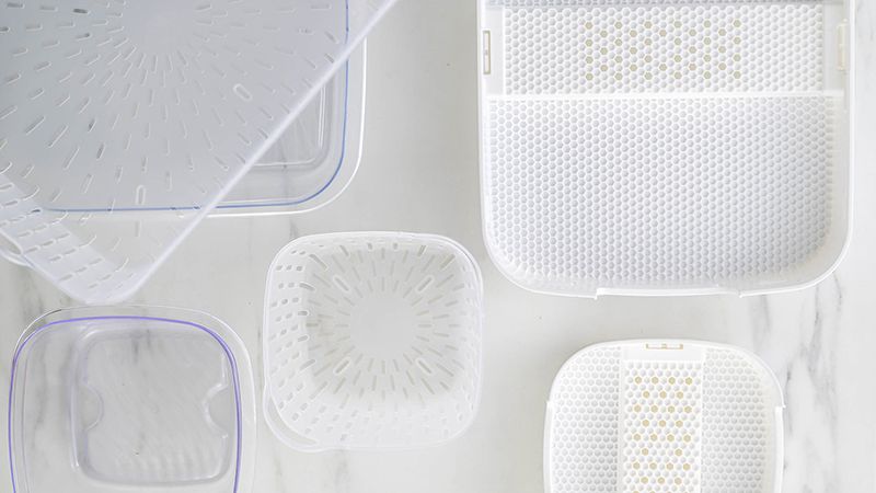 The special honeycomb structure and ventilation system designed on the lid enables a good air circulation inside the container. The internal basket ensure a better humidity control, which is ideal for preservation of fruits and vegetables.
