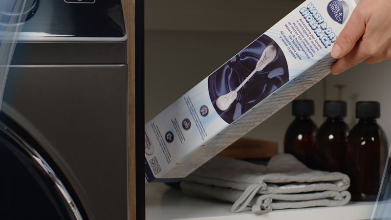 The Care+Protect universal drying rack is ideal for drying and washing shoes and delicates at the same time. It ensures that the shoe adheres to the walls of the drum, protecting it and the shoes from impact and making washing quiet.