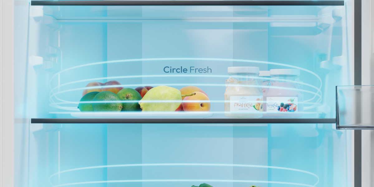 La innovadora tecnología Circle Fresh asegura una temperatura y humedad homogéneas en cada estante y rincón de tu frigorífico, manteniendo tus alimentos frescos por más tiempo sin que se resequen.