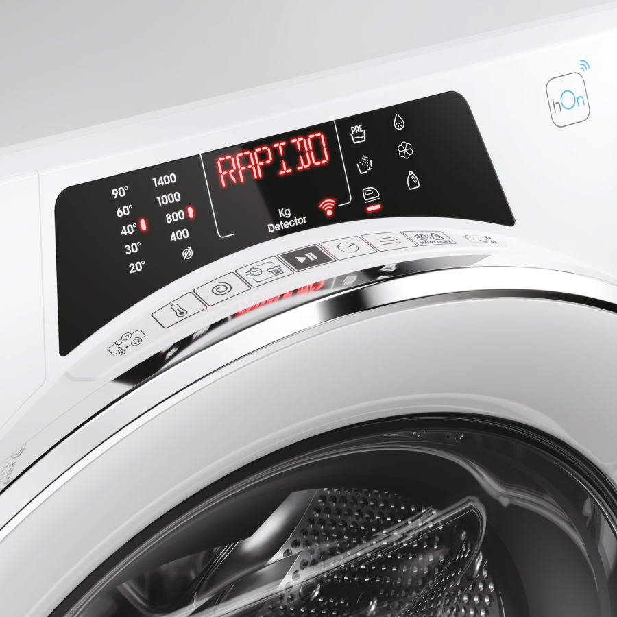 La App hOn te permite controlar los programas más utilizados, consultar el consumo, comparar la cantidad real de ropa lavada con la sugerida y aprender a optimizar el uso de tu lavadora para hacerla más eficiente.