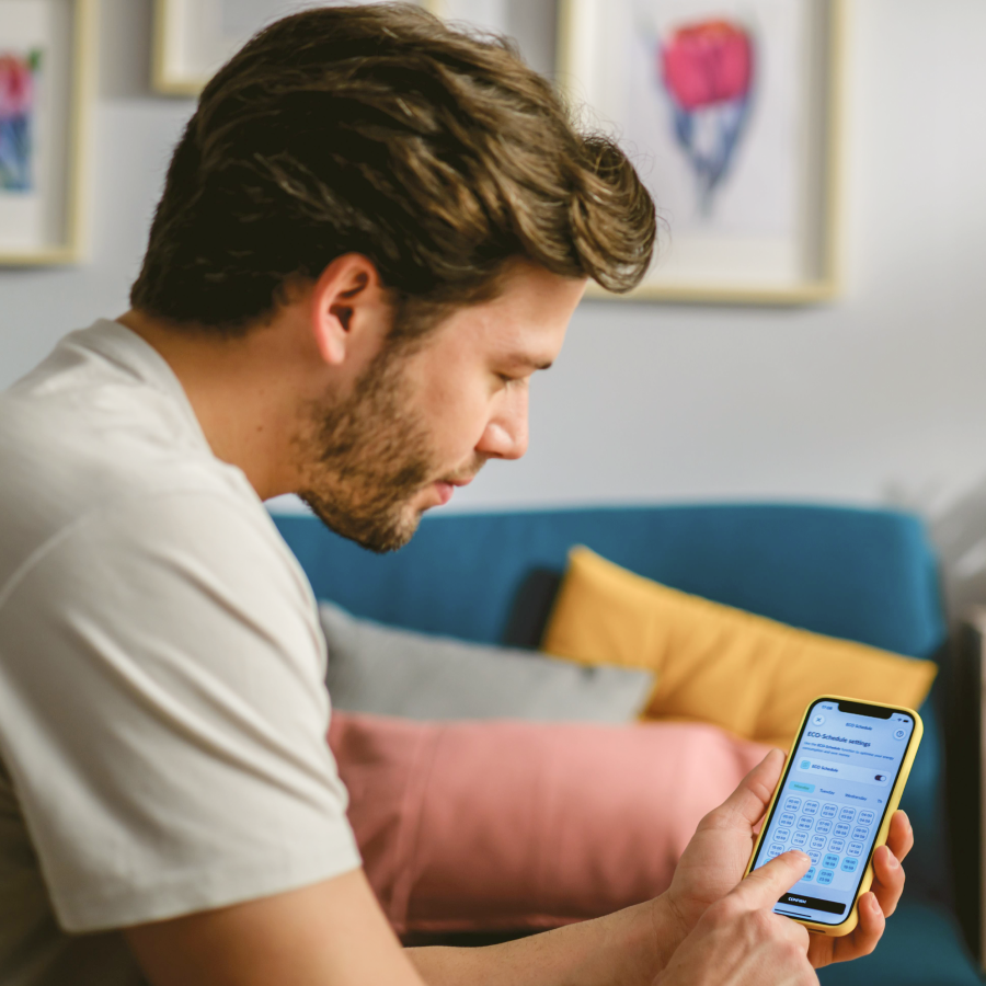 Gracias a la conectividad Wi-Fi*, tu RapidÓ se puede controlar fácilmente directamente desde tu smartphone incluso cuando no te encuentres en casa. Disponible con la aplicación hOn