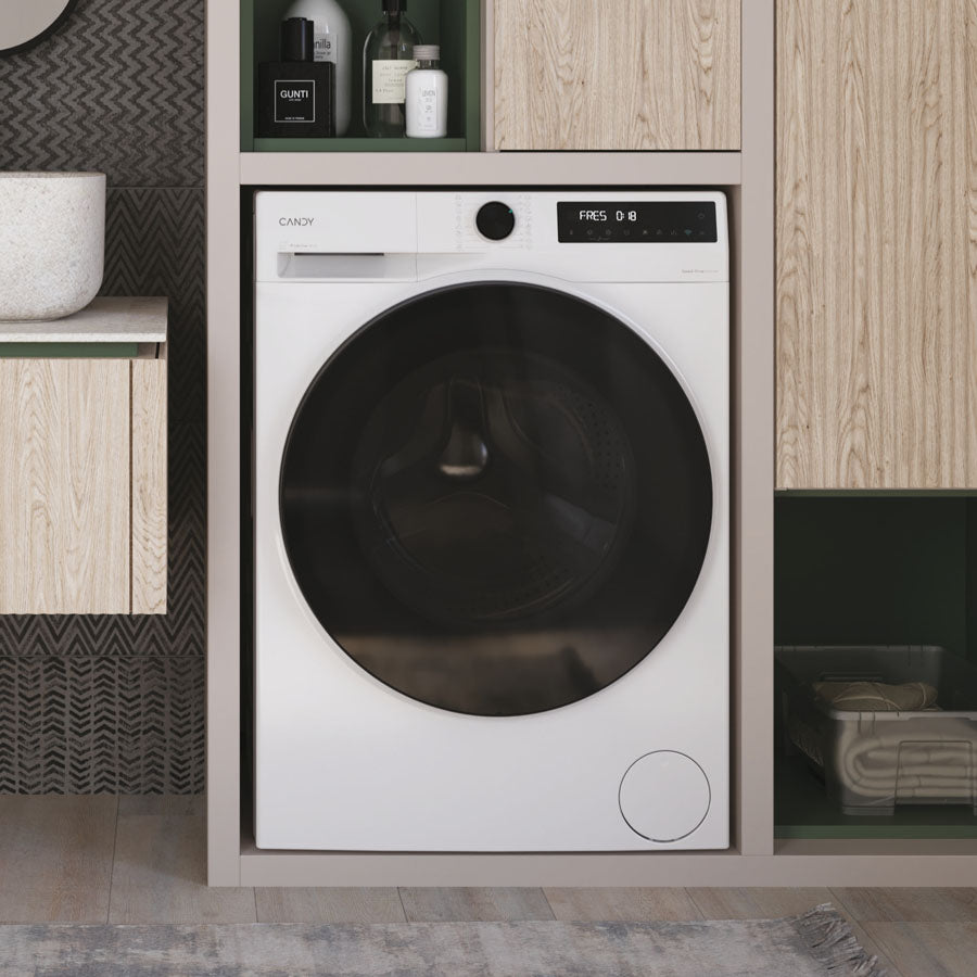 Las líneas esenciales y el perfil limpio hacen que las lavadoras Candy sean adecuadas para cualquier contexto: baño, cuarto de lavado o cocina.