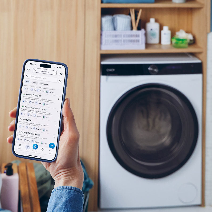 Gracias a la app hOn, puedes gestionar la lavadora directamente desde tu smartphone: