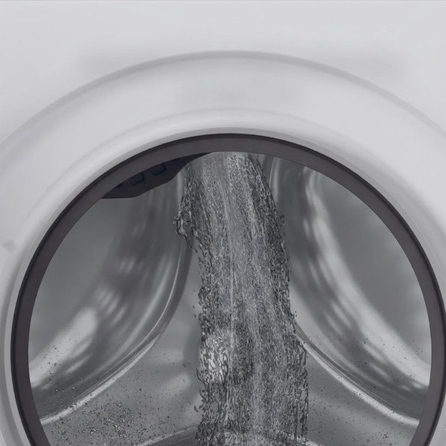 Al final de cada lavado, el sistema Smart Spray libera automáticamente un chorro de agua que limpia la puerta y el tambor, evitando residuos de suciedad y espuma.