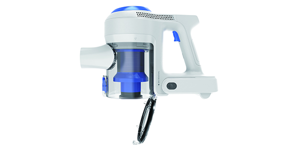 La batterie Lithium amovible de 22V peut être rechargée directement sur l'aspirateur ou en chargement externe. Elle est également équipée d'un voyant LED indiquant lorsque celle-ci doit être rechargée.