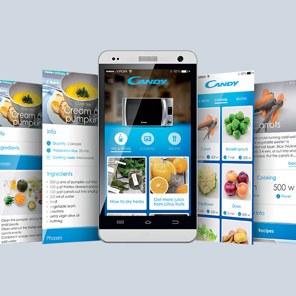 Cucinare non è mai stato così facile con l'app Candy simply-Fi! Scarica l’app e scopri come utilizzare al meglio il tuo nuovo Candy Divo. Naviga nelle diverse sezioni, "Cottura", "Ricette" e "Suggerimenti e trucchi" per avere dei suggerimenti, consigli e sorprendenti modi alternativi per utilizzare il tuo forno a microonde.