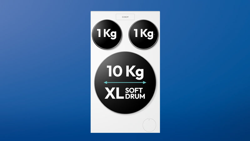 MultiWash intègre trois tambours pensés pour une flexibilité maximale : deux petits tambours de 1 kg pour les lessives rapides ou délicates, et un tambour principal de 10 kg pour toutes vos lessives du quotidien.