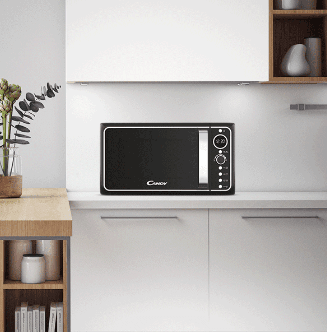 Apportez une touche de rétro à votre cuisine avec le micro-ondes Candy Divo, designé en Italie. Formes fluides et profils brossés pour un design élégant, manette et interface de contrôle intégrés pour une interface claire et efficace. Noir mat, noir brillant, rouge, orange, crème ou vert: choisissez la couleur qui se fondra dans votre cuisine ou qui lui apportera une touche de peps !