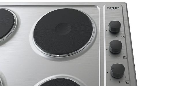 Cuisinière électrique avec plaques en fonte, sur lesquelles les casseroles de nourriture sont chauffées.