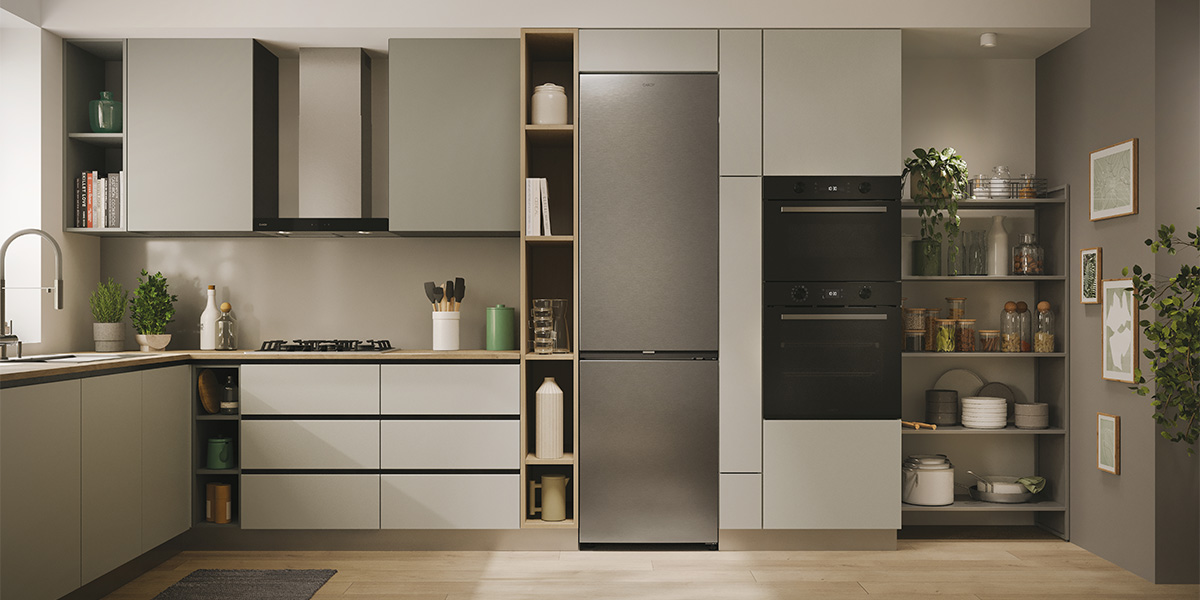 Ez a 60 cm-es kombi hűtőszekrény 409 literes kapacitással rendelkezik, és akár 21 élelmiszeres zacskó tárolására is alkalmas.* A nagy fagyasztófiókoknak köszönhetően extra hely áll rendelkezésre a terjedelmes tárgyak számára. *Az összehasonlítás célja, hogy azonnal érthető legyen a termék tényleges űrtartalma, feltételezve, hogy a bevásárlószatyrok telítettségükig meg vannak töltve, és tartalmuk bármilyen helyen tárolható. a termék területe. A termék túltöltése nem javasolt, a terméket a használati utasításnak megfelelően kell használni. A zacskók kapacitása az Egyesült Királyság átlagos közepes méretű bevásárlótáska térfogata alapján (forrás: Environment Agency of UK Government, 2011). A hűtőszekrény űrtartalma normál használati beállítással számolva, minden polccal és tartozékkal a helyén.