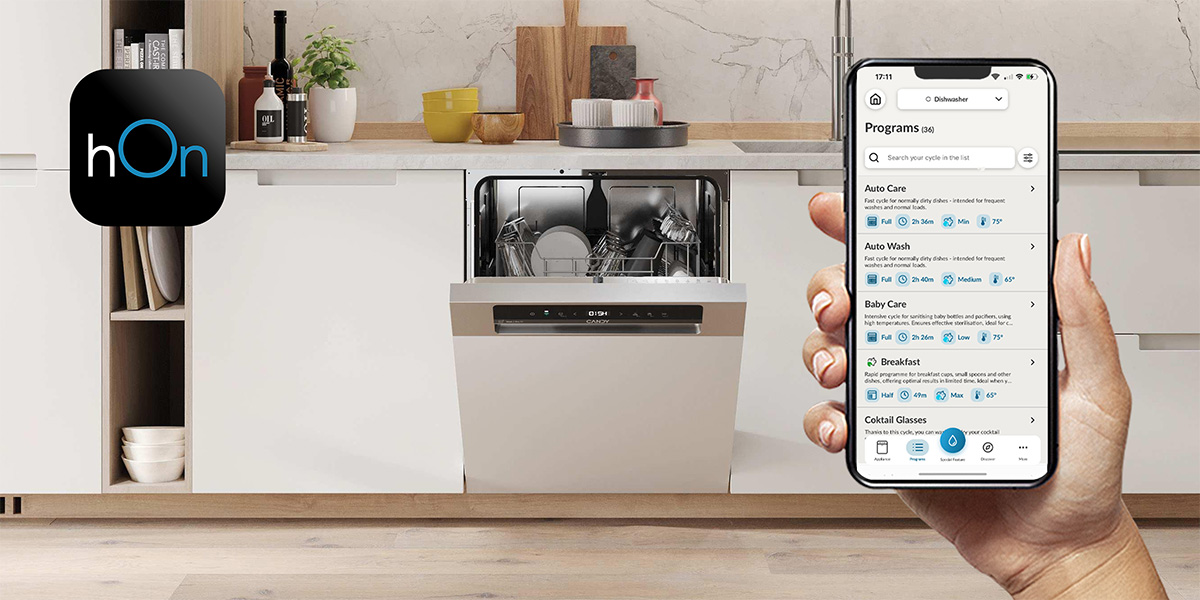 Az új Candy Rapido' okosabb, mint valaha - a hOn alkalmazásnak köszönhetően. Csak készíts képeket a kosarakba elhelyezett edényekről, és az alkalmazás automatikusan érzékeli az edények mennyiségét, típusát, anyagát. Ez alapján tanácsot kaphatsz a bepakoláshoz és a megfelelő ciklus kiválasztásához.