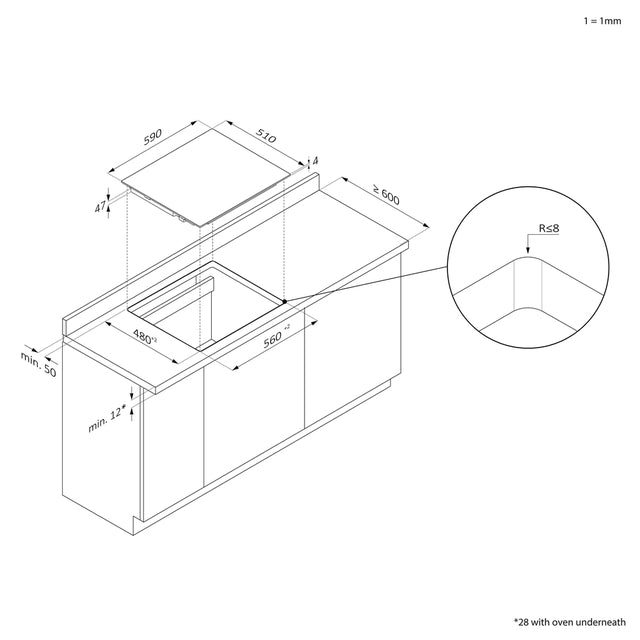 | Dimensioni del vano per l'installazione (mm) | 480X560 |