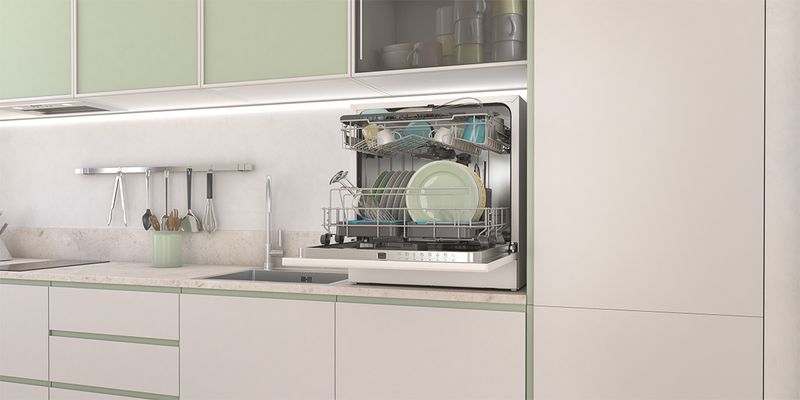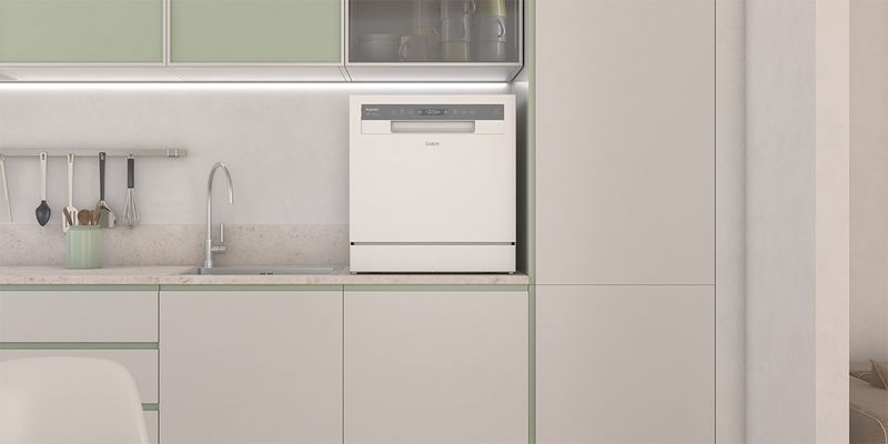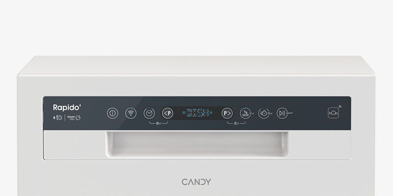 Lūk, Candy Rapidò — kompaktā galdvirsmas trauku mazgājamā mašīna, kas ir ideāls risinājums, ja jums ir grūtības ielādēt lielu trauku mazgājamo mašīnu. Tā mazais izmērs lieliski iederas pat visšaurākajās virtuves telpās, un tā ir uzlabota, lai būtu efektīvāka un gudrāka, piedāvājot vairākus ātrus mazgāšanas ciklus un funkcijas, kas atvieglo jūsu ikdienu.