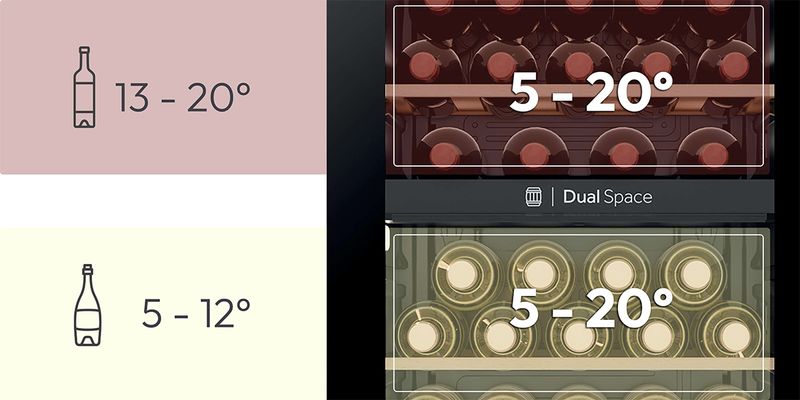 Com o controle independente de cada zona, defina a temperatura ideal para cada tipo de vinho.