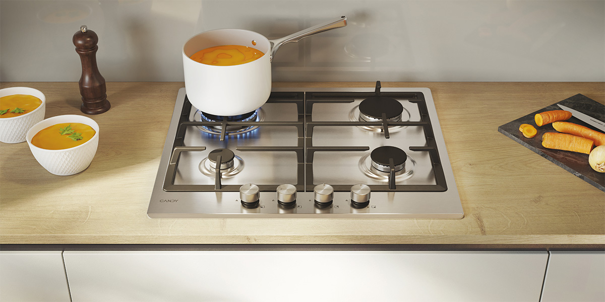 Durabilitatea placii metalice a noului Candy Cook 600 - Gas On Metal asigura rezistenta si performante ridicate, iar cu butoanele ergonomice noi, culoare inox, create de designeri italieni, se integreaza perfect in orice stil de bucatarie. In plus, acoperirea completa a grilei asigura o transmitere mai buna a caldurii si stabilitate a vaselor chiar si pe plitele de 60 cm.